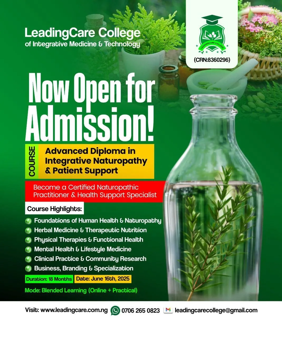Students will practice herbal identification, safe dispensing, and creating therapeutic nutrition plans under supervision in natural health centers or community settings.